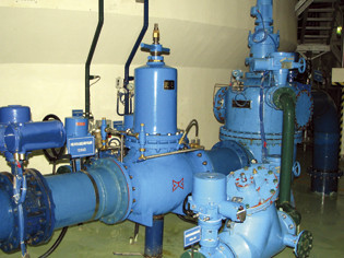4、流量與減壓閥過流面積:電磁流量計顯示為1100m3/h,此時主閥過流面積為17357mm2(大過流面積53092mm2),只占大過流面積的32%,還有充分的的過流量。計算出過流孔流速為17.6m/s。與我們的分析數據相關不大。至2008年10月止,紫坪鋪電站全部機組的技術供水系統全部改造完畢。
