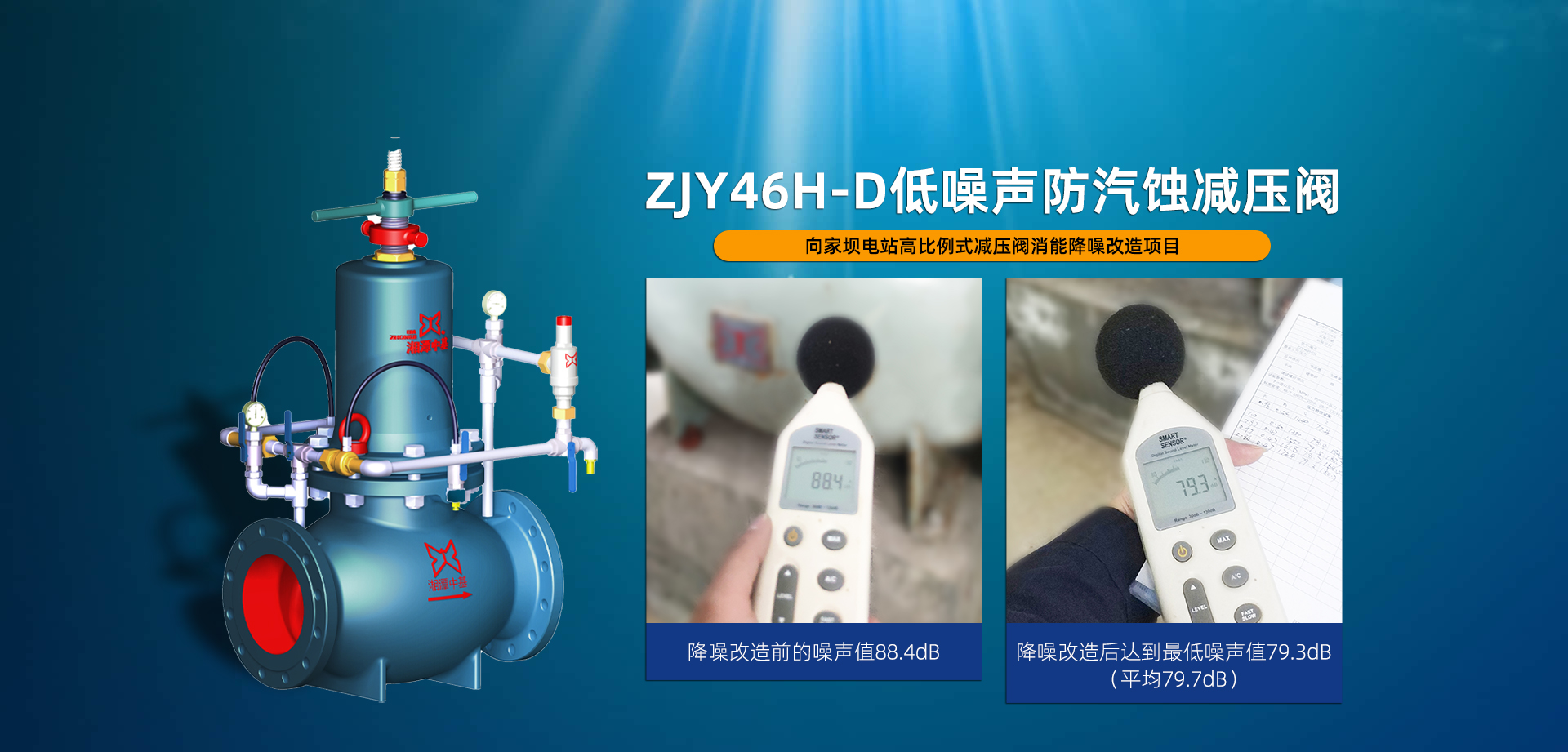 其中ZJY46H-D型低噪聲防氣蝕組合式減壓閥,在具備減壓比達到 12:1(國內外減壓閥減壓比一般為3:1),特有的出口壓力上限鎖定系統等技術特色外,更基于CFD流體擬真計算,優化了減壓過程中的氣蝕區,并大幅降低了運行噪音。